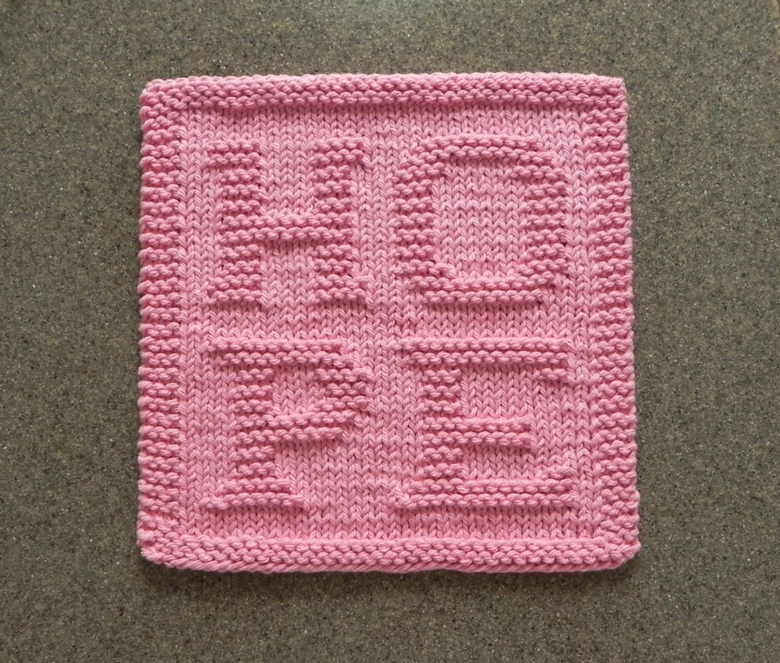 HOPE Knit Dishcloth Pattern. H O P E letters knitted into a square for dishcloths, wash cloths, scarf or incorporate into a larger project. Someone you know could probably use an uplifting gift of hope. Easy knit and purl stitches!